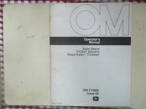 John deere weed eater parts catalog manual. John deere ty2541 electric ty2542 gasoline weed eater trimmers. John deere 65e electric weed eater trimmer operator's manual om-ty3843. Deere manual john eater om trimmer weed electric operators